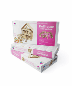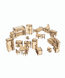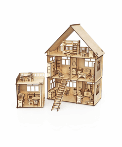 ДЪРВЕНА КЪЩА ЗА КУКЛИ С МЕБЕЛИ, СГЛОБЯЕМА, 296 ЧАСТИ