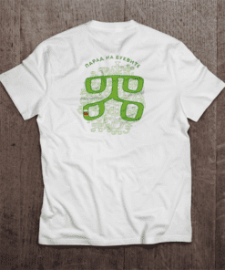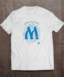 Тениската е изработена от висококачествена памучна материя и е с изображение на буква от кирилицата (лице) със съответния символ на глаголица (гръб).