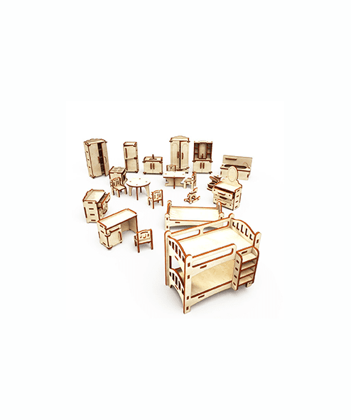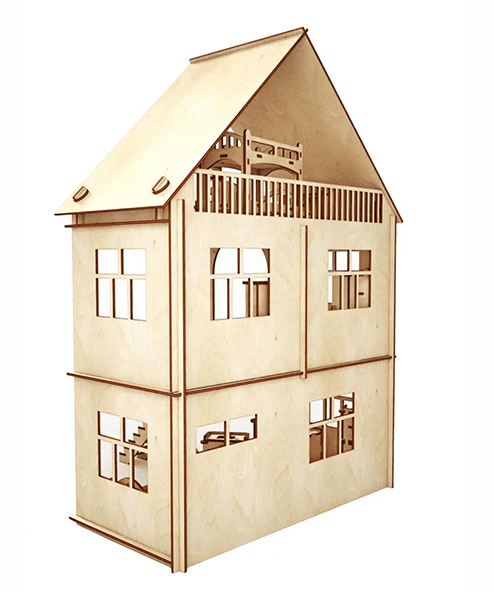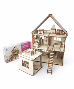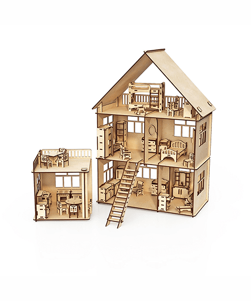 ДЪРВЕНА КЪЩА ЗА КУКЛИ С МЕБЕЛИ, СГЛОБЯЕМА, 296 ЧАСТИ