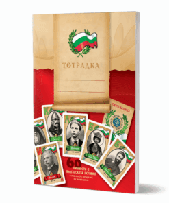 Комплектът включва 10 тетрадки А4 с широки редове и по 40 листа, всяка с уникална корица, посветена на значими личности и свети места от нашето минало.