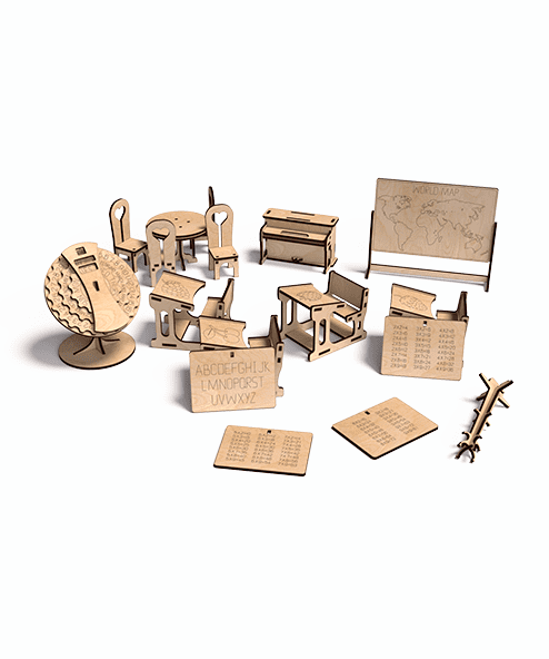 КОМПЛЕКТ УЧИЛИЩЕ ЗА КУКЛИ, СГЛОБЯЕМ, ОТ ДЪРВО, 197 ЧАСТИ
