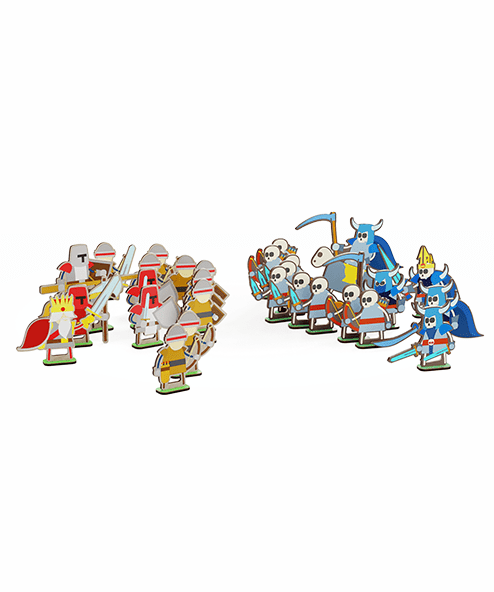 Комплектът включва крепостта и две армии с 29 цветни фигури – кралската армия и армията на живите мъртви.