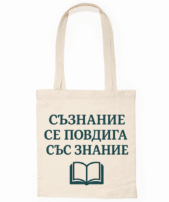 Пренесете българската мъдрост и силата на знанието в ежедневието си с тази стилна и практична чанта, изработена от 100% органичен памук. С естествения си, неизбелен цвят и удобните дълги дръжки, тя е подходяща както за пазаруване, така и за носене на книги, документи или любими вещи.