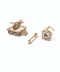 Комплекът включва хеликоптер, пътни знаци, бариера и пункт за охрана. Паркингът е оборудван с повдигащ механизам.